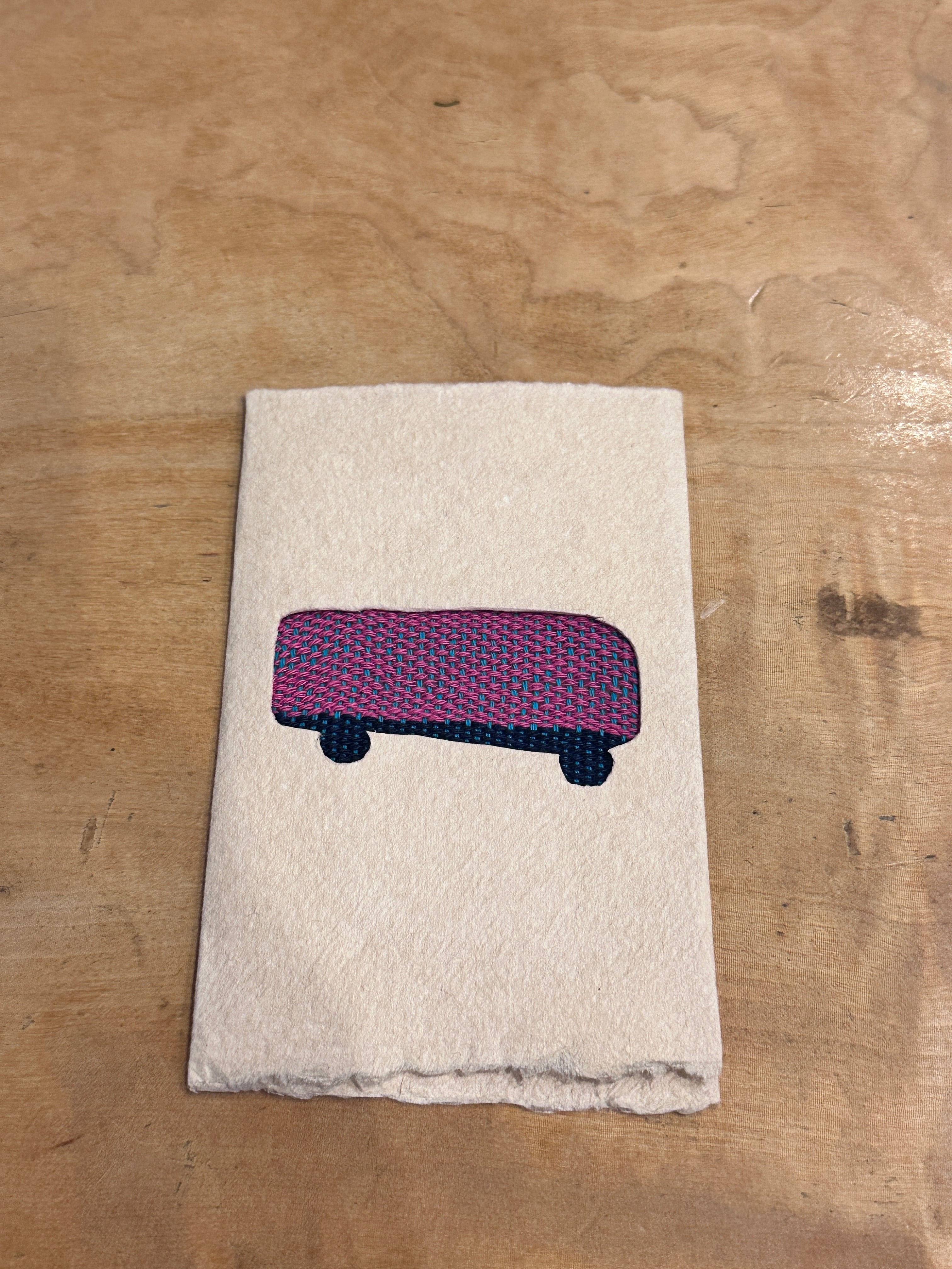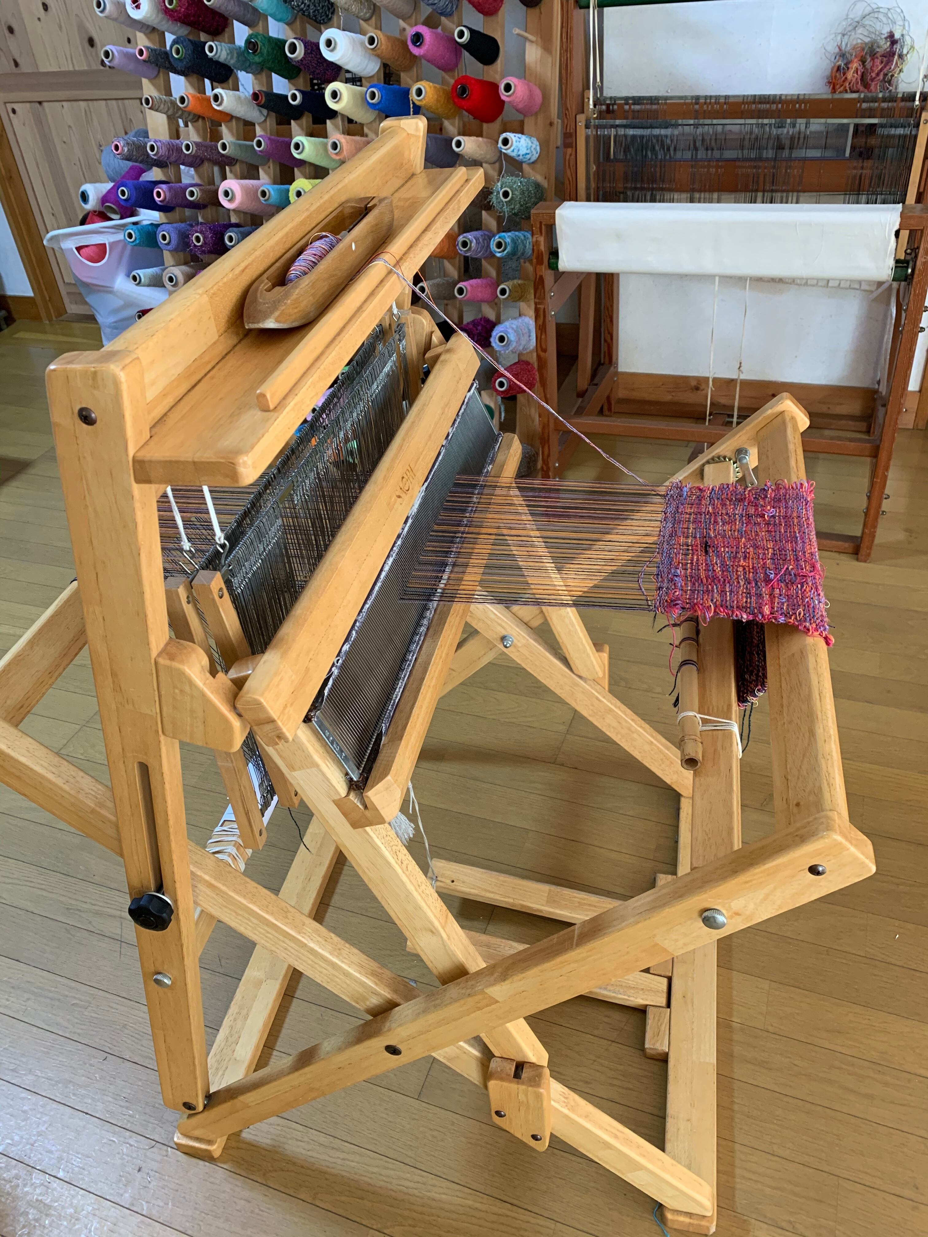 手漉き和紙で見開きのカードを作り、中には手織りコースターが1枚入っています。閉じた状態では、窓から色とりどりのコースターが見えます。