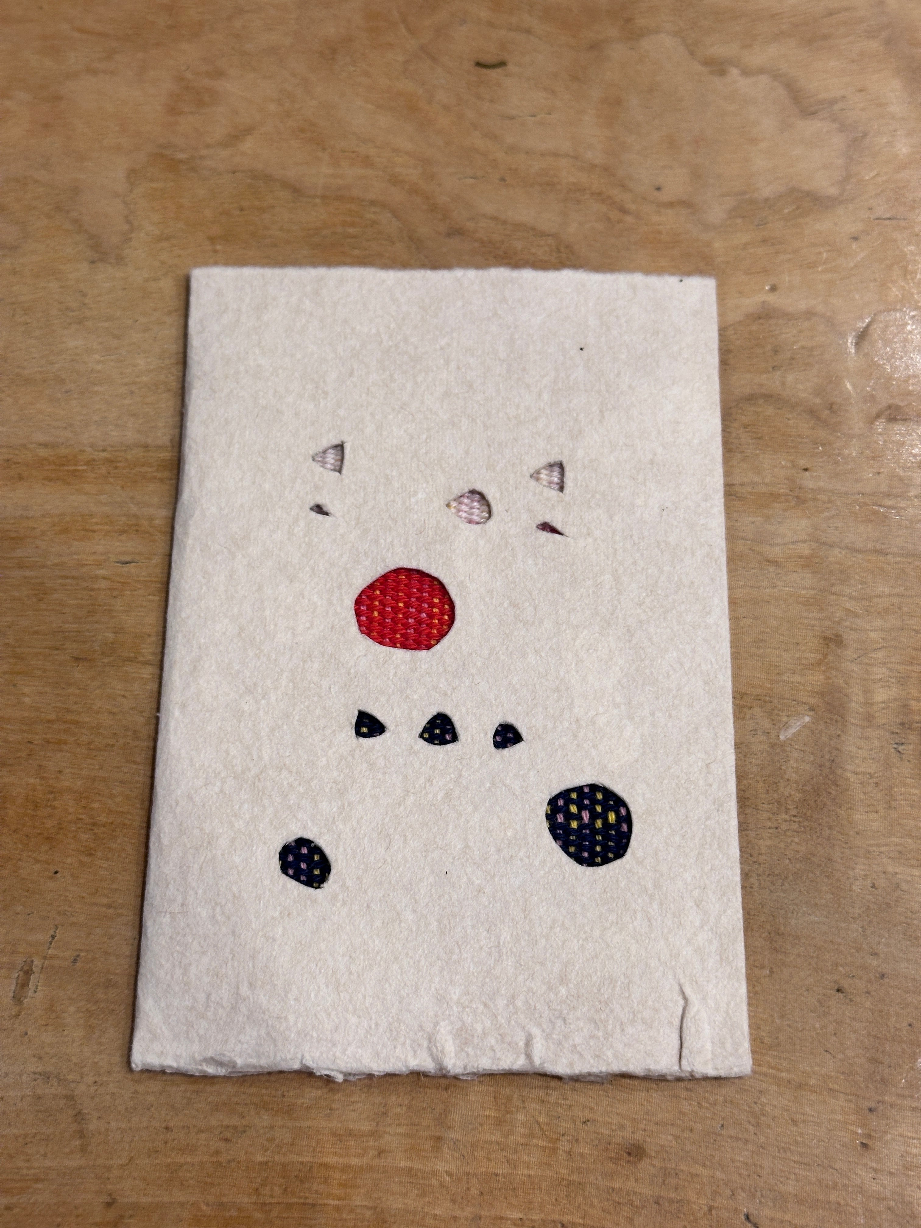 手漉き和紙で見開きのカードを作り、中には手織りコースターが1枚入っています。閉じた状態では、窓から色とりどりのコースターが見えます。